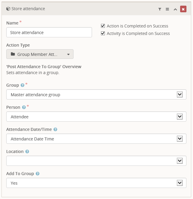 0 Attendance Trials... 2 Robbie Funderburk posted 9 Years Ago With the advent of eRA we treat weekly attendance tracking very seriously. We have Connection Cards and have written a workflow to capture that info and place those folks into a group and they are marked as attended. We are actually going through that group every week as a staff and checking who we saw in attendance at a weekend service who may not have turned in a Connection Card. What is the best way to have my Serving Teams show up as attended within that group? Looking to have all the adults that attended and we know it to show up as a checked name in that group.